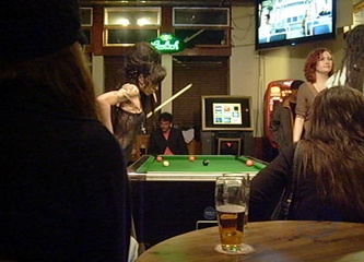 Amy Winehouse i Mick Whitnall graja w bilard z "The Good Mixer", Londyn