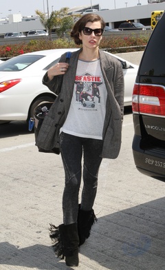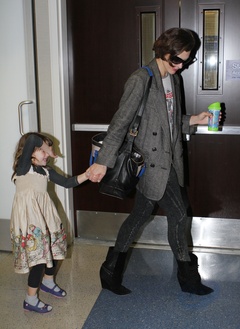 Milla Jovovich z corka na lotnisku w Los Angeles