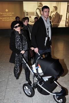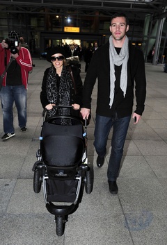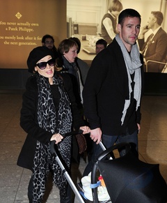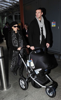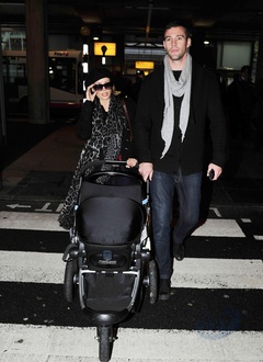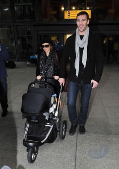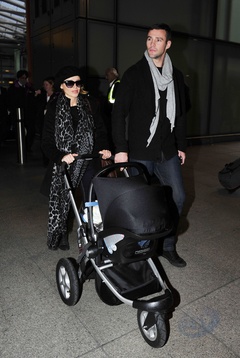 Dannii Minogue i Kris Smith z dzieckiem na lotnisku, Londyn
