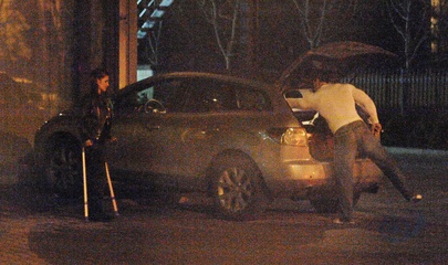 Katarzyna Skrzynecka wychodzi ze studia programu "Taniec z Gwiazdami", Warszawa 2010
