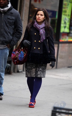 America Ferrera na planie filmowym "Brzydula Betty", Nowy Jork