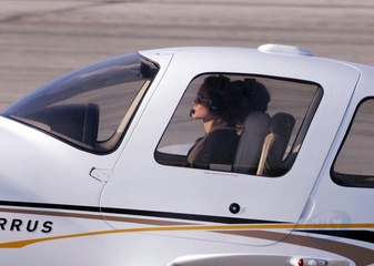 niedawno otrzymala licencje pilota. Jej umiejetnosci mozna bylo ujrzec na lotnisku w Santa Monica