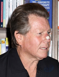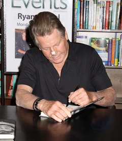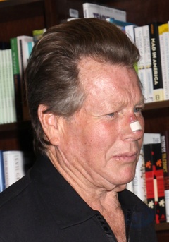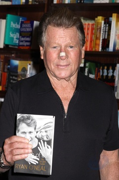 Ryan O'Neal z plastrem na nosie promuje ksiazke, Nowy Jork