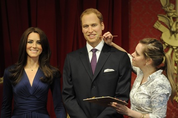 Ksiaze William i Ksiezna Kate w muzeum Madame Tussauds, Londyn