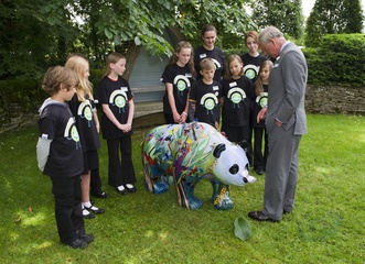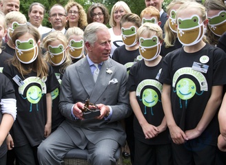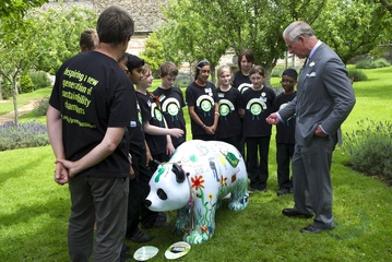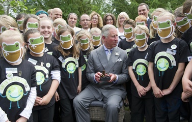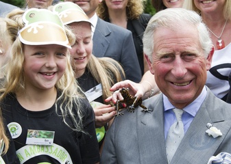 Ksiaze Karol podczas spotkania z dziecmi, Gloucestershire