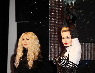 Trzy woskowe figury Madonny w muzeum Madame Tussauds, Londyn