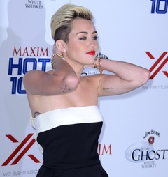 Miley Cyrus - dziwny makijaz wkolo ust na imprezie Maxim