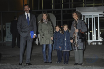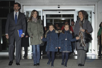 Ksiezna Letizia i ksiaze Filip z corkami odwiedzili krola Hiszpanii w szpitalu, Madryd