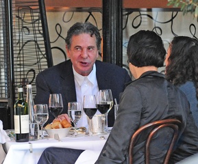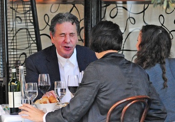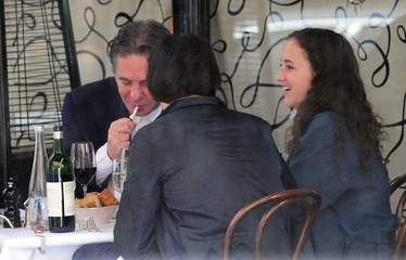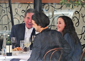 Charles Saatchi w dniu urodzin z corka i jej chlopakiem