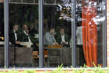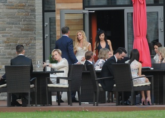 Goscie na weselu Izabeli Janachowskiej ogladaja mecz