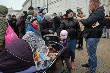 Frankowicze protestuja pod Palacem Prezydenckim