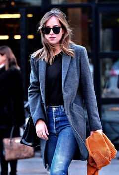 Dakota Johnson w szarym plaszczu