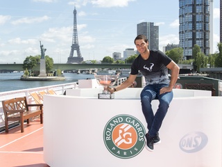Rafael Nadal pozuje z pucharem w Paryzu
