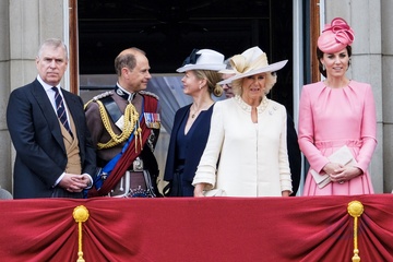 Edward, Camilla, Karol,Elzbieta, Filip, Harry, Kate, Charlotte, Jerzy, William