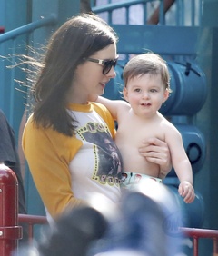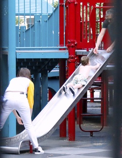 Anne Hatahaway z mezem i synkiem na placu zabaw
