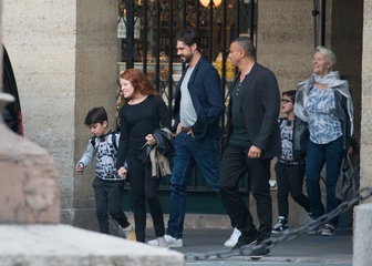 Dzieci Celine Dion wychodza z hotelu w Paryzu