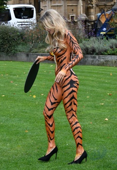 Joanna Krupa na nago, pomalowana w tygrysie wzory w akcji PETA