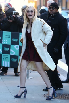 Dakota Fanning w plaszczu misiu i z golymi nogami