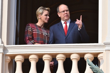 Ksiezna Charlene i ksiaze Albert na balkonie palacu podczas Sainte Devote