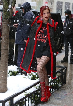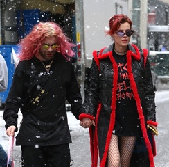 Bella Thorne i jej chlopak w rozowych wlosach na spacerze z psem