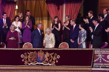 Krolowa Elzbieta, Karol, William, Sophie, Ludwika Windsor, Camilla, Beatrice, Eugenie, Anna, Harry, Megan Markle