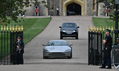 Ksiezniczka Eugenia z mezem odjezdzaja z Zamku Windsor