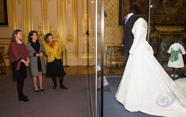 Ksiezniczka Eugenia oglada swoja suknie slubna na wystawie