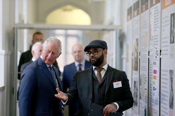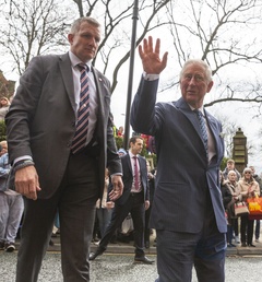 Ksiaze Karol podczas wizyty w Manchester and Wigan
