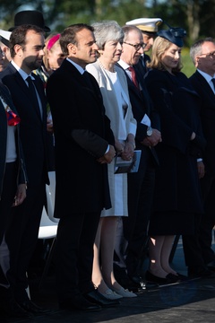 Macron i May na obchodach 75. rocznicy ladowania w Normandii