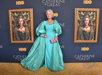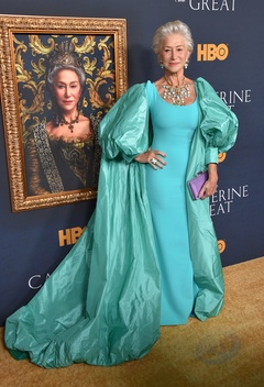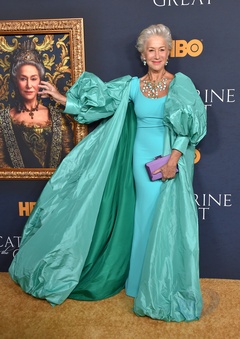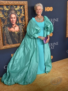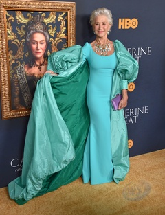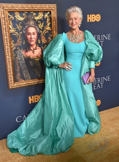 Helen Mirren w turkusowej sukni na premierze filmu Katarzyna Wielka