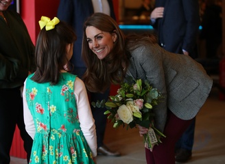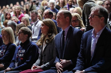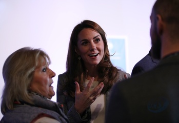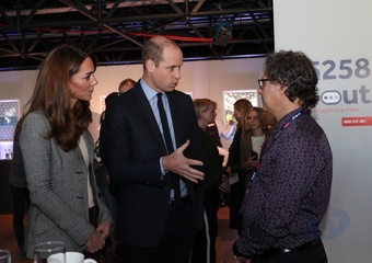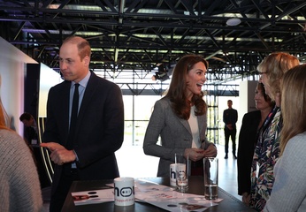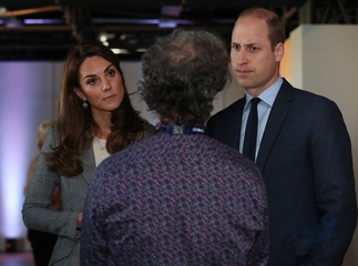 Ksiaze William i ksiezna Kate podczas wizyty w Troubadour White City Theatre
