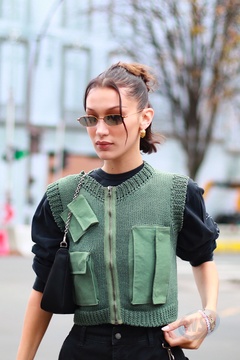Bella Hadid ubrana w stylu militarnym