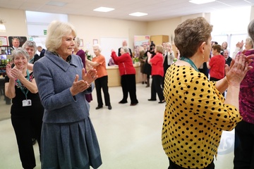 Ksiezna Camilla w szarej garsonce podczas Royal Voluntary Service