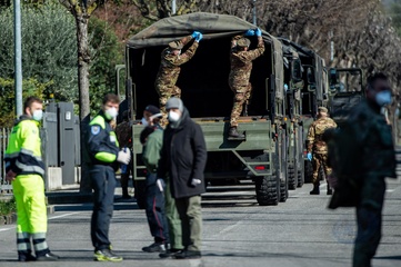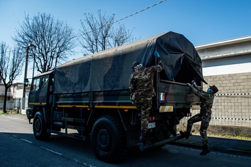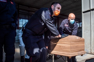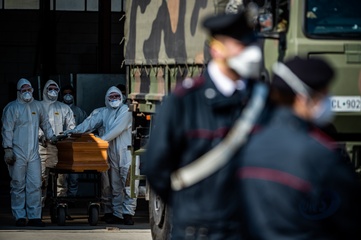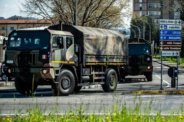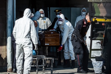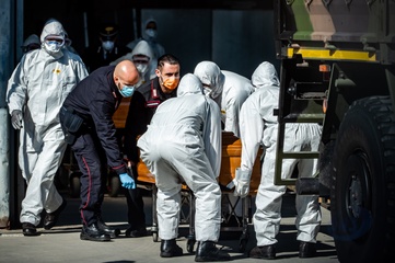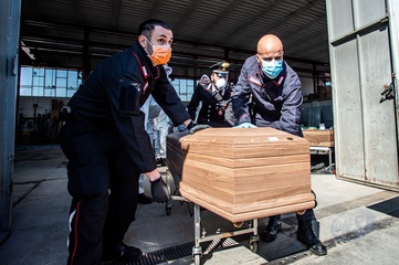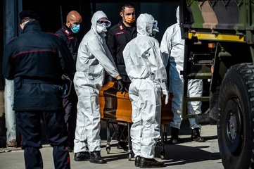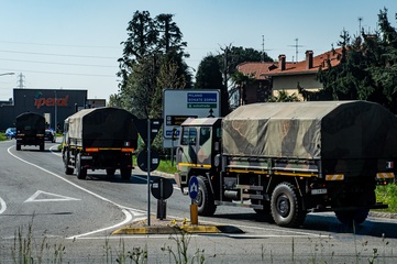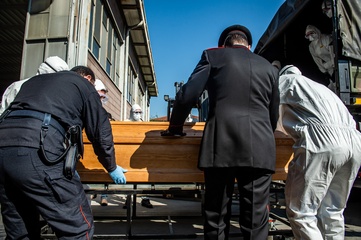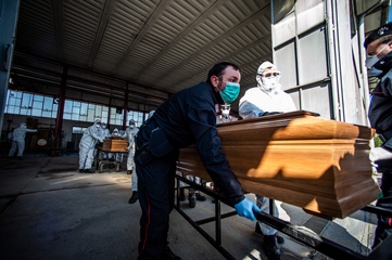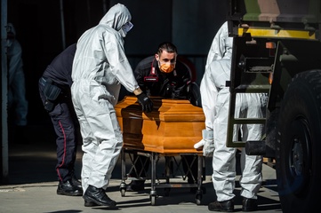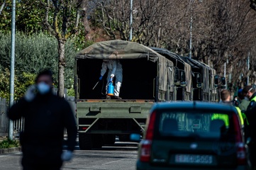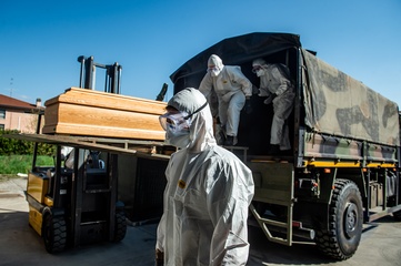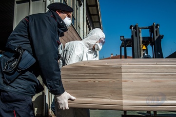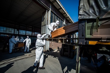 Koronawirus - ciezarowki przewoza trumny