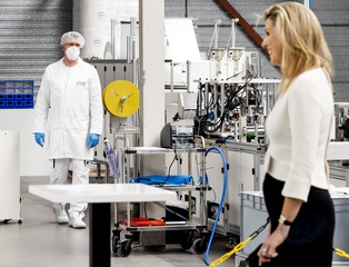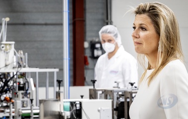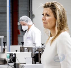 Krolowa Maxima odwiedzila fabryke maseczek ochronnych