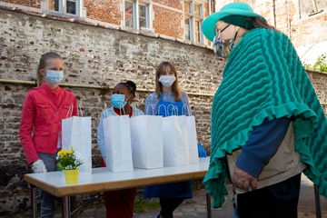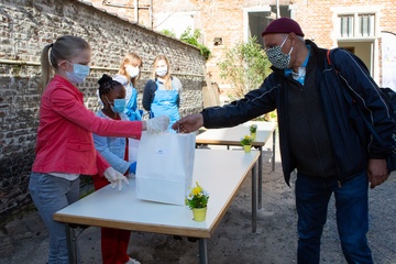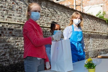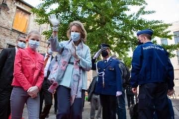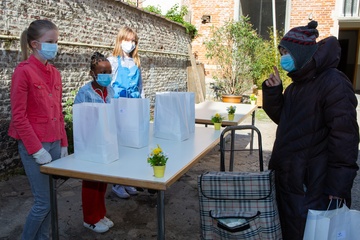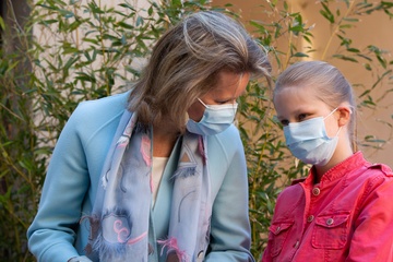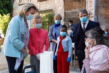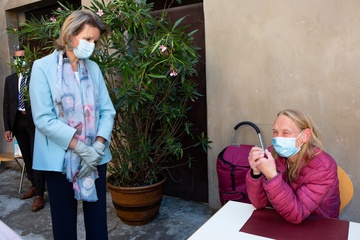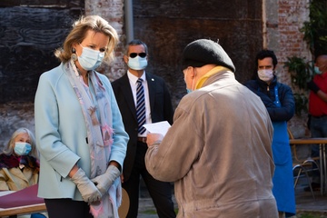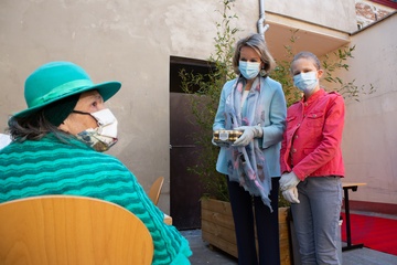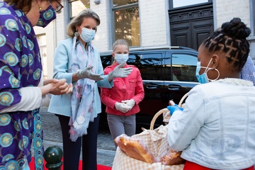 Krolowa Matylda z corka wydaja posilki dla bezdomnych