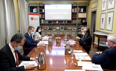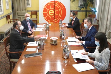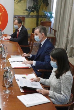 Krolowa Letizia i krol Filip na spotkaniu dot. koronawirusa