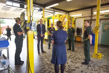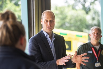 Ksiaze William mierzy temperature w uchu na spotkaniu z pracownikami pogotowia