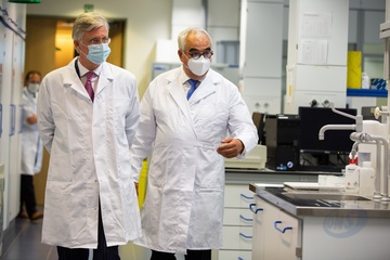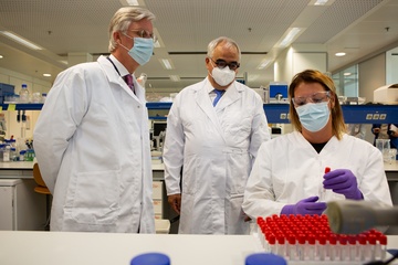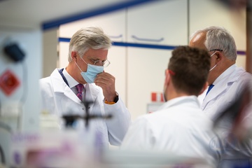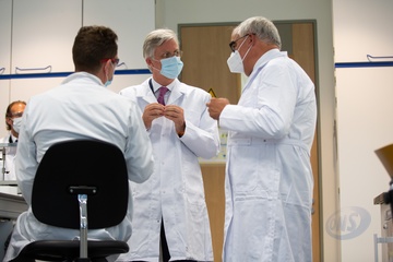 Krol Filip z Belgii odwiedzil laboratorium farmaceutyczne