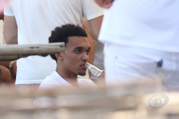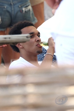 pilkarz Trent Alexander-Arnold z dziewczynami na plazy w Saint Tropez