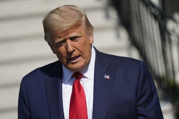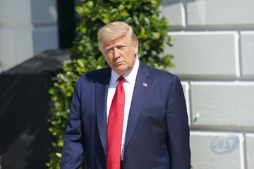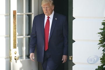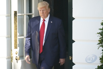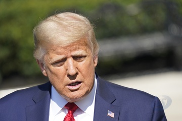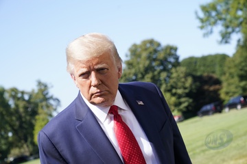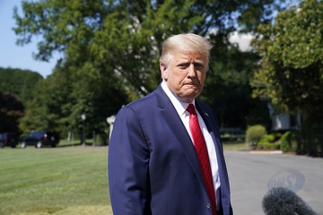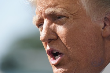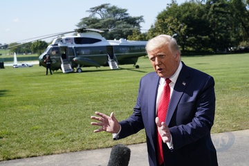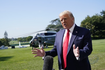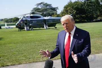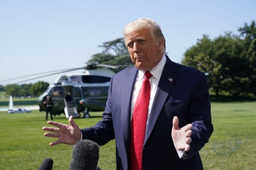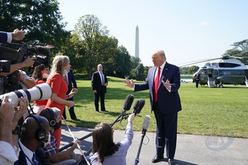 Donald Trump rozmawia z dziennikarzami przed wyjazdem do Minessoty