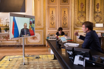Widoekonferencja Emmanuela Macrona i Wladimira Putina