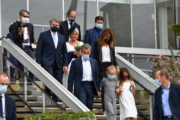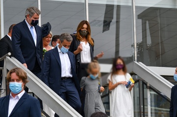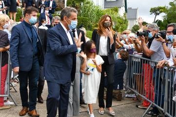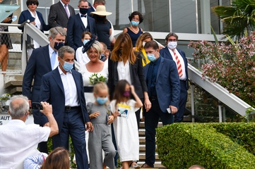 Sarkozy z corka i Carla Bruni na slubie przyjaciela