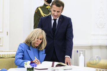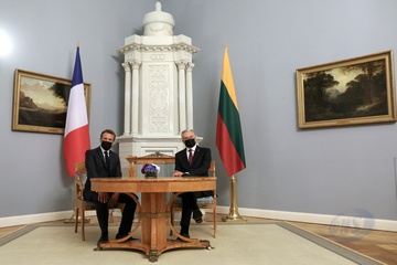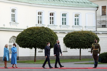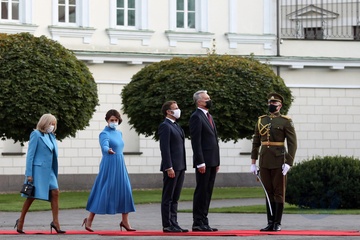 Emmanuel Macron, Brigitte Macron, Gitanas Nauseda