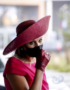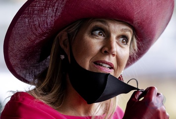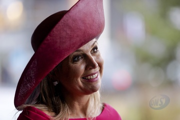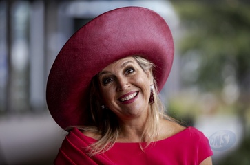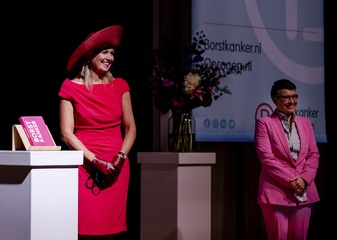 Krolowa Maxima w czerwieni podczas inauguracji miesiaca raka piersi na Swiatowym Forum w Hadze