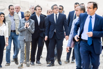 Emmanuel Macron, Brigitte Macron, Khaled El-Enany, Franck Riester, Jean-Yves Le Drian