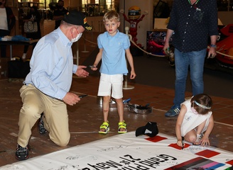 Ksiaze Albert z dziecmi tworza prace plastyczne na Grand Prix Monaco 2021