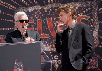 Rodzina Elvisa Presleya i bohaterzy filmu o Elvisie na ceremonii odcisniecia stop i dloni