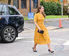 Ksiezna Kate w miodowej sukience - podczas wizyty w szpitalu