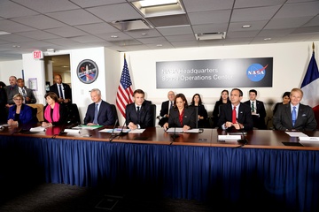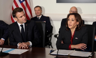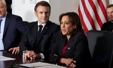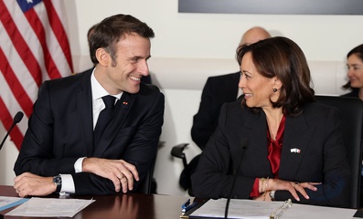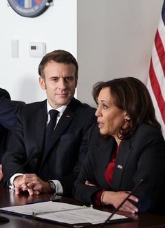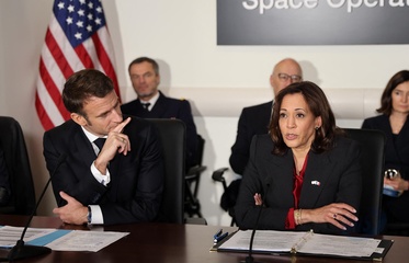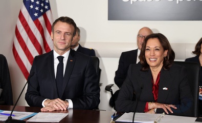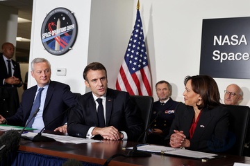 Emmanuel Macron wpatrzony w Kamala Harris - podczas spotkania w NASA